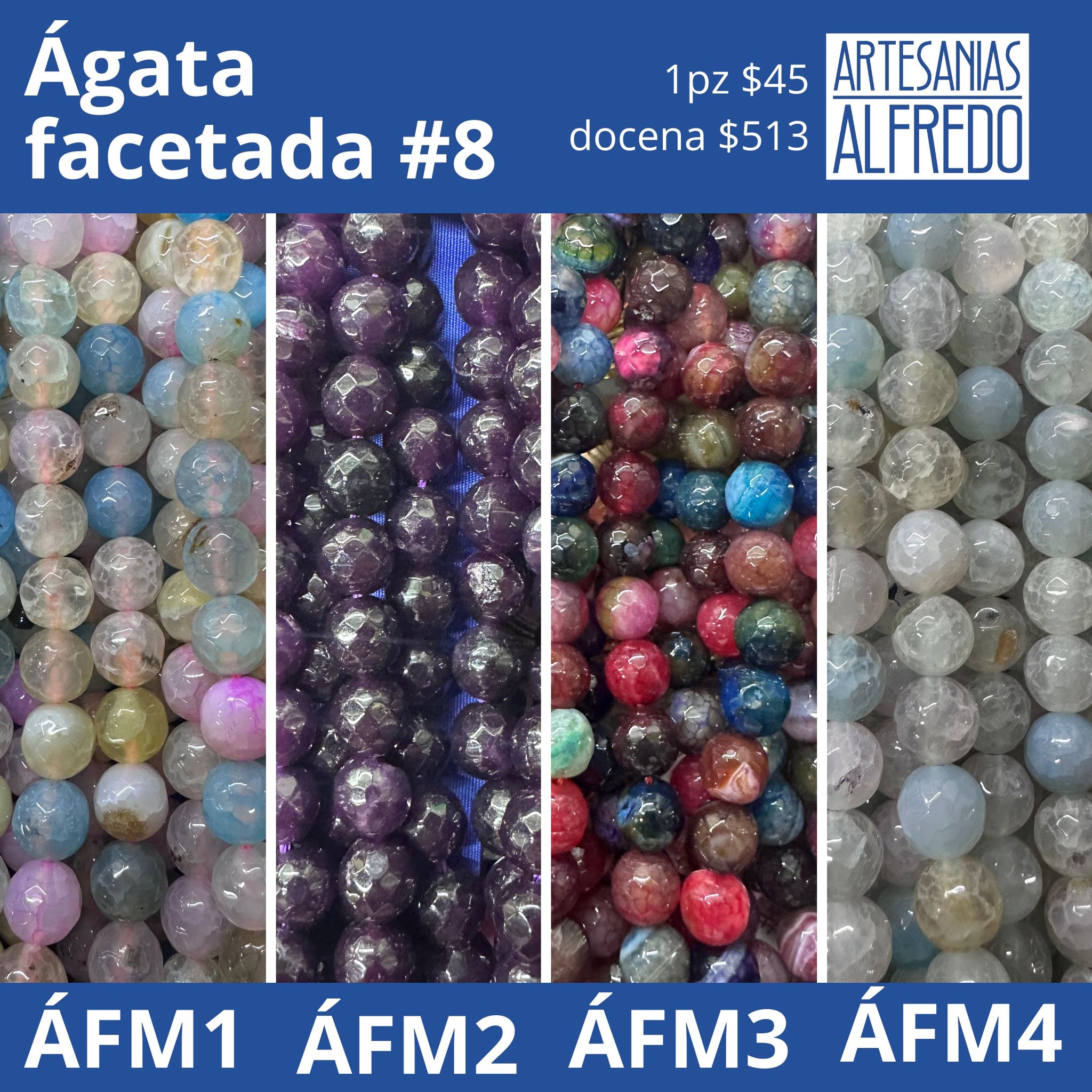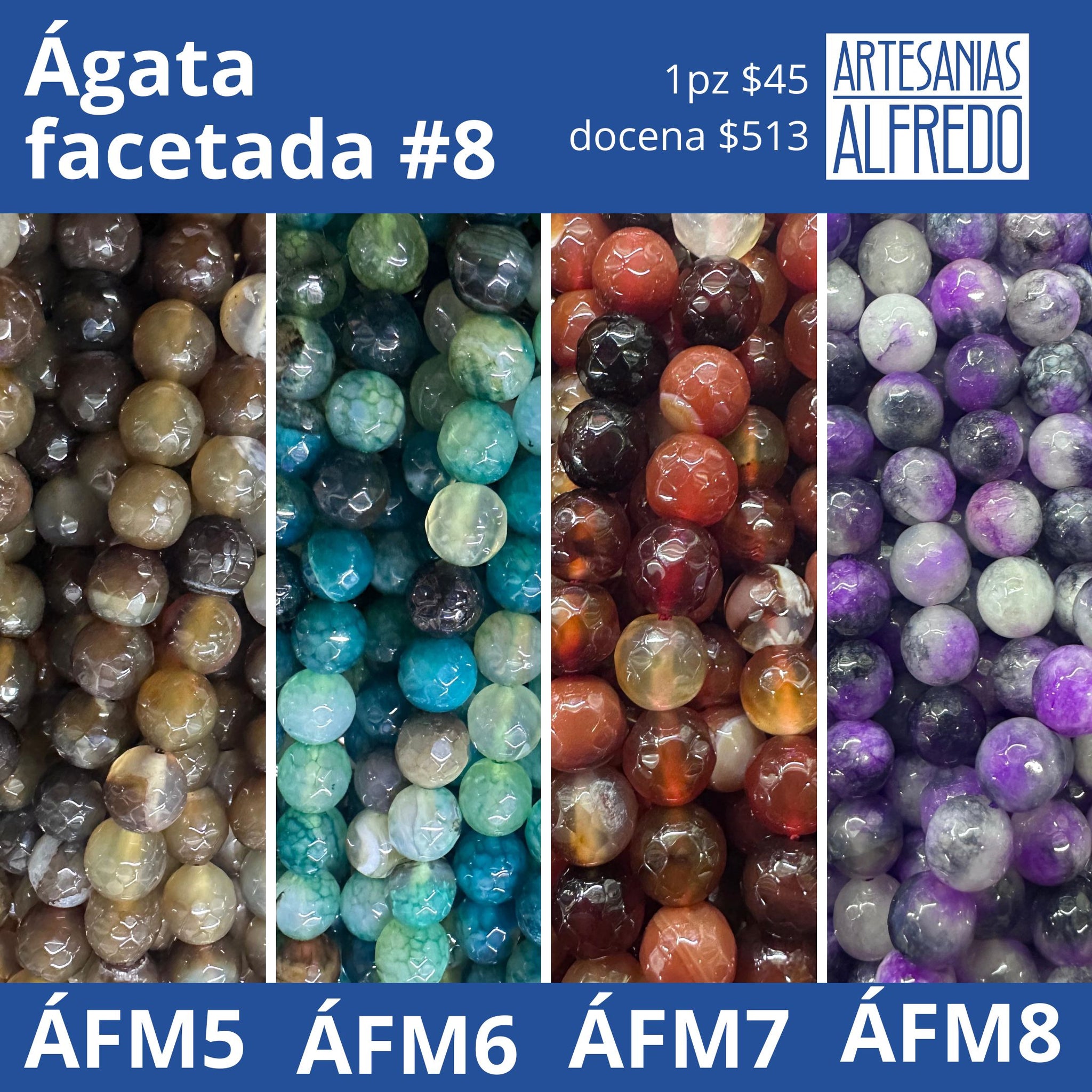 Piedra natural ágata facetada #8 varios colores