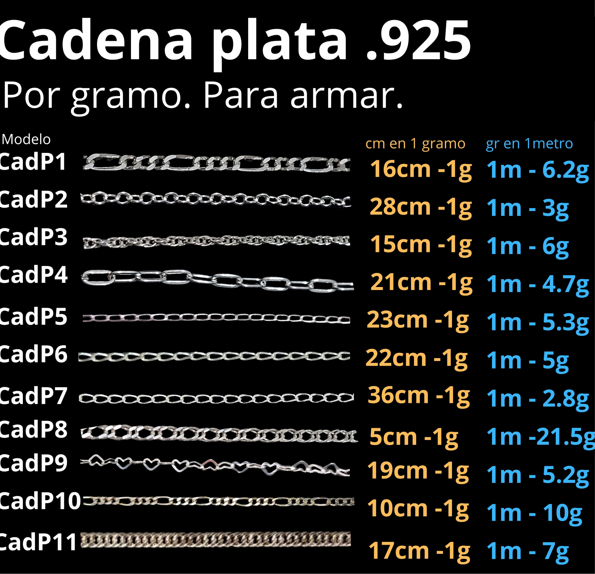 Cadena por gramo, en imagen indica cuantos centímetros son en un gramo y cuantos gramos son un metro. si tiene dudas mándenos un mensaje al 5548722272